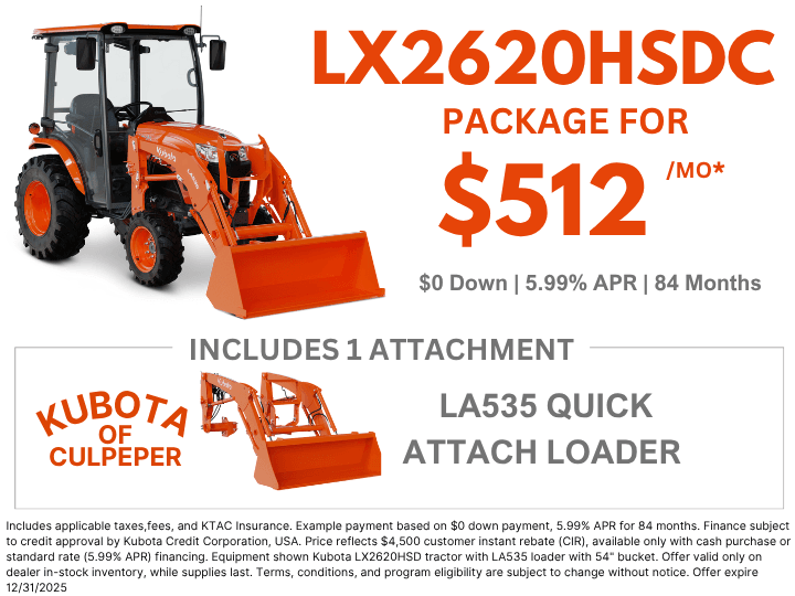 Kubota of Culpeper has been servicing our area for years. Kubota of Culpeper offers quality new equipment from Kubota, Land Pride, Cub Cadet and Echo. If we do not have the machine you are looking for, we will find you one that will fit your needs!
